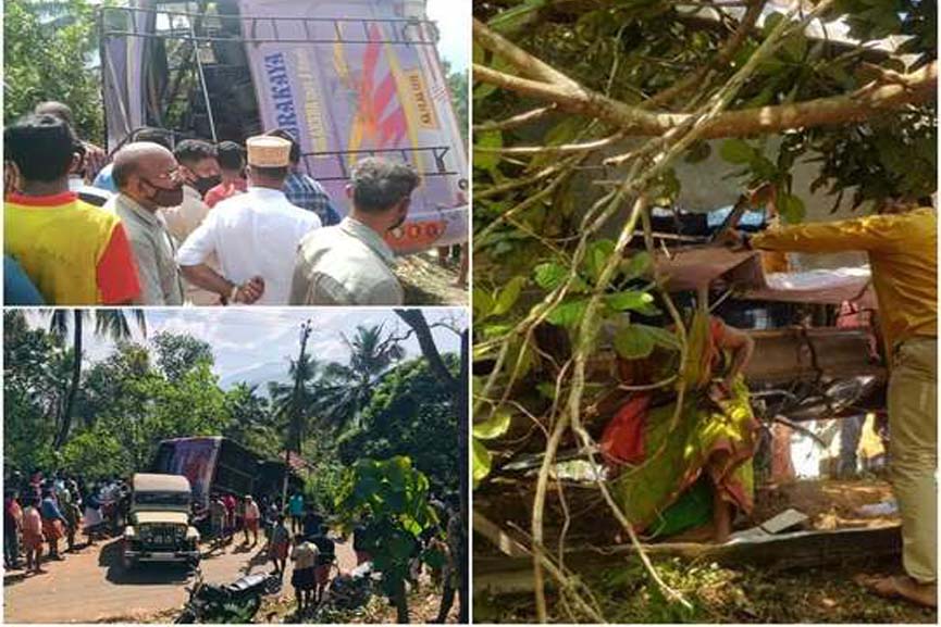 പാണത്തൂർ പരിയാരത്ത് ഞായറാഴ്ച ഉച്ചക്ക് 12 മണിയോടെയാണ് നാടിനെ നടുക്കിയ അപകടം നടന്നത്. കർണാടകത്തിലെ ഈശ്വരമംഗലത്ത് നിന്ന് വന്ന ബസ് നിയന്ത്രണം വിട്ട് വീടിന് മുകളിലേക്ക് മറിയുകയായിരുന്നു. അതിർത്തി ഗ്രാമമായ കരിക്ക ചെത്തുകയം എന്ന സ്ഥലത്തേക്ക് വന്ന വധുവിന്റെ വീട്ടുകാർ സഞ്ചരിച്ച ബസാണ് അപകടത്തിൽപ്പെട്ടത്.