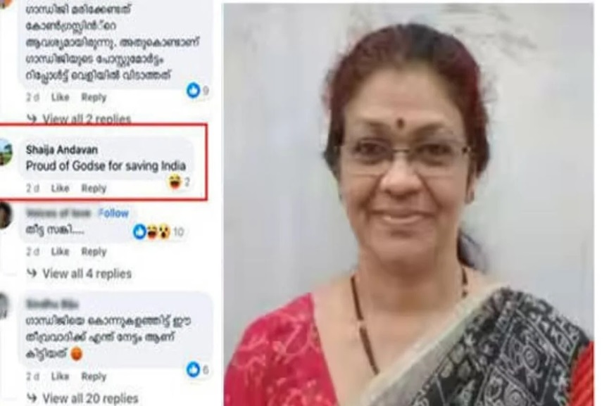 മഹാത്മാ ഗാന്ധിയുടെ രക്തസാക്ഷി ദിനമായ ജനുവരി 30ന് അഡ്വ. കൃഷ്ണരാജ് എന്നയാൾ ഫേസ്ബുക്കിൽ പോസ്റ്റ് ചെയ്ത കുറിപ്പിന്റെ അടിയിൽ, ‘പ്രൗഡ് ഓഫ് ഗോഡ്സെ ഫോർ സേവിങ് ഇന്ത്യ’ എന്ന് ഷൈജ ആണ്ടവൻ കമന്റിട്ടിരുന്നു. ഹിന്ദുസഭാ പ്രവർത്തകൻ നഥൂറാം വിനായക് ഗോഡ്സെ ഭാരതത്തിലെ ഒരുപാട് പേരുടെ ഹീറോ എന്ന പോസ്റ്റിനടിയിലായിരുന്നു വിവാദ കമന്റ്.