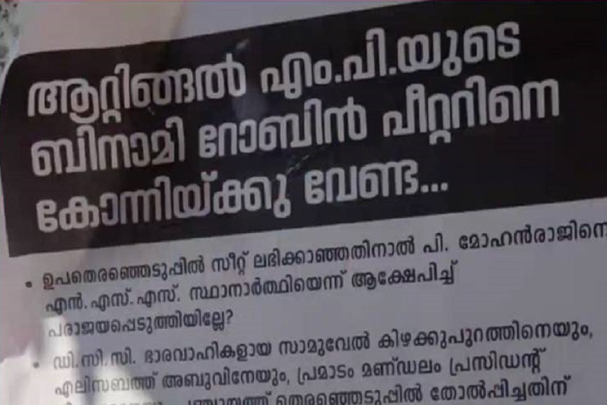 അടൂര് പ്രകാശിനെതിരെയും നേരത്തെ കോണ്ഗ്രസിലെ ഒരു വിഭാഗം രംഗത്ത് വന്നിരുന്നു. ഔദ്യോഗികമായി സ്ഥാനാര്ഥി നിര്ണയമോ പ്രഖ്യാപനമോ നടക്കുന്നതിനു മുന്പേ റോബിന് പീറ്ററാണ് വിജയ സാധ്യതയുള്ള സ്ഥാനര്ഥി എന്ന് അടൂര് പ്രകാശ് പ്രഖ്യാപനം നടത്തിയെന്നായിരുന്നു ആരോപണം.