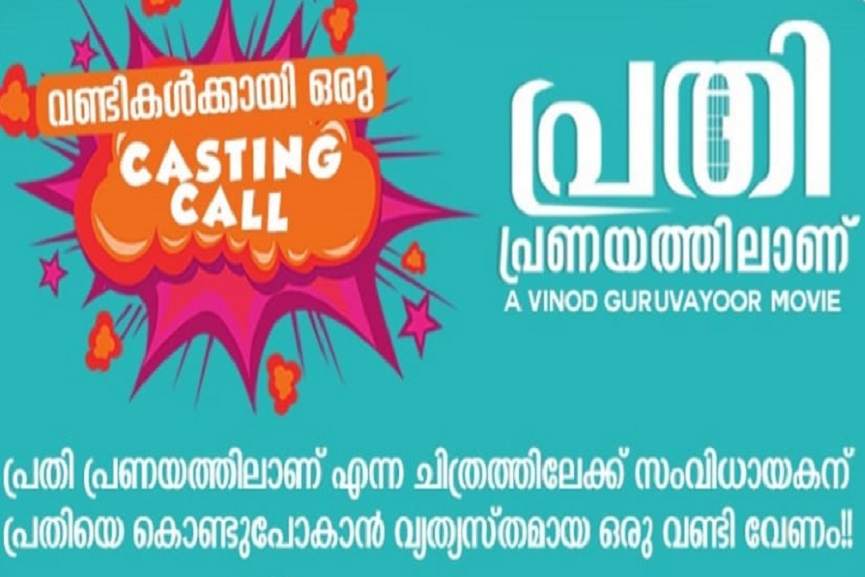 മലയാള സിനിമാ ചരിത്രത്തിലാദ്യമായി ഒരുവണ്ടിക്ക് വേണ്ടി ‘കാസ്റ്റിങ് കാൾ‘ വിളിച്ച് ‘മിഷൻ സി‘ സംവിധായകൻ വിനോദ് ഗുരുവായൂർ. ഇദ്ദേഹം സംവിധാനം ചെയ്യുന്ന ‘പ്രതി പ്രണയത്തിലാണ്‘ എന്ന പുതിയ ചിത്രത്തിന് വേണ്ടിയാണ് വേറിട്ട കാസ്റ്റിങ് കാൾ.