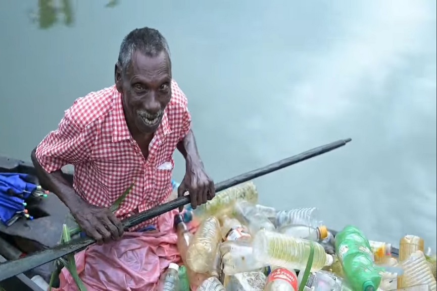 പോളിയോ ബാധിച്ച് തളർന്ന കാലുകളുമായി കായൽ ലക്ഷ്യമാക്കിയുള്ള രാജപ്പന്റെ യാത്രക്ക് കഴിഞ്ഞ 6 വർഷമായി ഒരു ലക്ഷ്യം മാത്രമേയുള്ളൂ. കായലും ഇടത്തോടുകളും മലിനമാകരുത് എന്നതാണത്. കായലിലും ഇടത്തോടുകളിലുമുള്ള പ്ളാസ്റ്റിക് മാലിന്യം ശേഖരിച്ച് ഇവ ആക്രിവിലക്ക് വിൽക്കുമ്പോൾ കിട്ടുന്ന തുഛമായ തുകയാണ് ഇദ്ദേഹത്തിന്റെ ഉപജീവന മാർഗം.