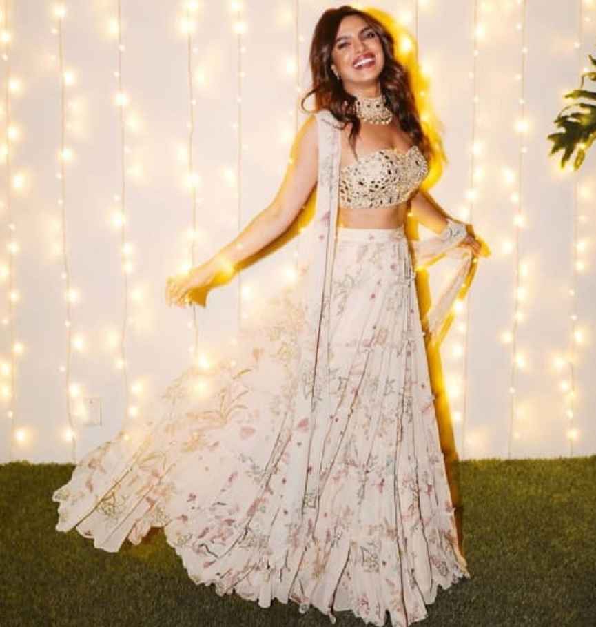 മനോഹരമായ ഫ്ളോറൽ ലെഹങ്കയും ചോളിയും ധരിച്ചുള്ള ചിത്രമാണ് പ്രിയങ്ക പങ്കുവെച്ചിരിക്കുന്നത്. എല്ലാവർക്കും ദീപാവലി ആശംസകൾ നേർന്നാണ് പ്രിയങ്ക ചിത്രങ്ങൾ പോസ്റ്റ് ചെയ്തത്. ഏവർക്കും സ്നേഹവും വെളിച്ചവും സന്തോഷവും പകരുന്നു എന്നും താരം കുറിച്ചു.
