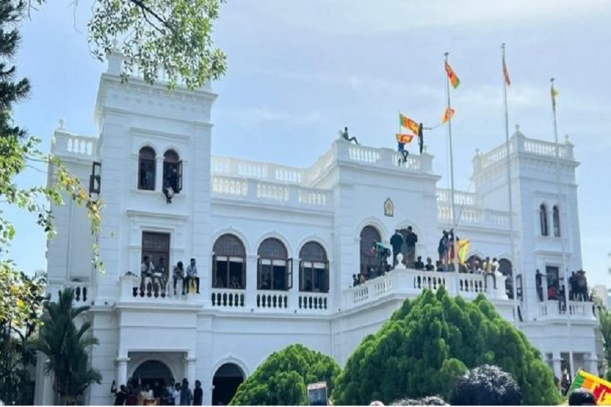 Sri Lanka | Protestors breach the premises of Sri Lankan PM’s office in Colombo, raise flag atop the building#SriLanka pic.twitter.com/JceFYxTVyI