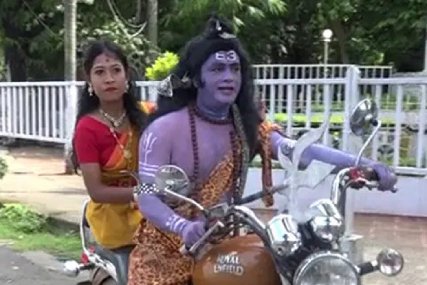 പാര്വതിയുടെ വേഷമിട്ട സഹഅഭിനേത്രി പരിഷ്മിതയോടൊപ്പം ശിവന്റെ വേഷഭാവങ്ങളോടെ ബൈക്കിലെത്തിയ ബിരിഞ്ചി ബൈക്ക് നിര്ത്തി പെട്രോള് തീര്ന്നതായി അഭിനയിച്ചു കൊണ്ട് മോദി സര്ക്കാരിന് കീഴില് ഇന്ധനവില കുതിച്ചുയര്ന്നതിന് എതിരെ പ്രതിഷേധിക്കാന് ആരംഭിച്ചു.