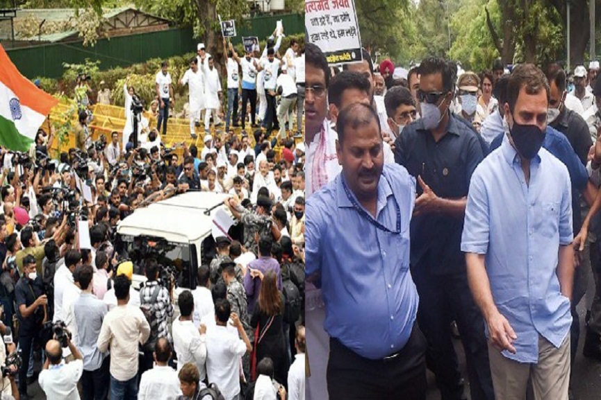 അതിനിടെ, പ്രതിഷേധം ശക്തമാക്കി കോൺഗ്രസ് രാഗത്തെത്തിയിട്ടുണ്ട്. എഐസിസി ആസ്ഥാനത്ത് നേതാക്കളെ പോലീസ് തടഞ്ഞു. ജന്തർമന്തറിലേക്കുള്ള എല്ലാ വഴികളും ഡെൽഹി പോലീസ് അടച്ചു. കോൺഗ്രസ് പ്രവർത്തകരെ പോലീസ് ബാരിക്കേഡ് വെച്ച് തടയുകയാണ്. കേരള ഹൗസിലേക്കുള്ള എല്ലാ വഴികളും പോലീസ് അടച്ചു. കൂടാതെ കർശന നിയന്ത്രണവും ഏർപ്പെടുത്തിയിട്ടുണ്ട്.