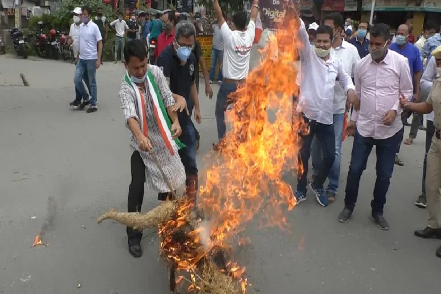 രാഹുലിനെ കയ്യേറ്റം ചെയ്യുന്ന നിലയിലേക്ക് കാര്യങ്ങള് എത്തിയതോടെ വിഷയത്തില് വന് പ്രതിഷേധം ഉയര്ന്നിരുന്നു. ഇതിന്റെ ഭാഗമായാണ് അസമിലെ ഗുവാഹത്തിയില് കോണ്ഗ്രസ് പ്രവര്ത്തകര് യുപി മുഖ്യമന്ത്രി യോഗി ആദിത്യനാഥിന്റെ കോലം കത്തിച്ചു.