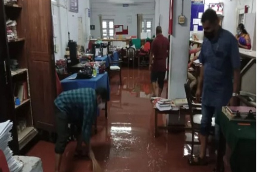കോഴിക്കോട്: കനത്ത മഴയെ തുടർന്ന് കോഴിക്കോട് മാനാഞ്ചിറയിലെ ട്രഷറി ഓഫിസ് വെള്ളത്തിലായി. അടിയിൽ നിന്ന് ഉറവ വന്നതോടെയാണ് വെള്ളം ഓഫിസിന്റെ ഉള്ളിലേക്ക് കടന്നത്. ജീവനക്കാർ വെള്ളം കളയാനുള്ള ശ്രമം നടത്തിയെങ്കിലും കനത്ത മഴ തുടരുന്നതിനാൽ ശുചീകരണ പ്രവർത്തനം ദുഷ്ക്കരമാക്കി.
