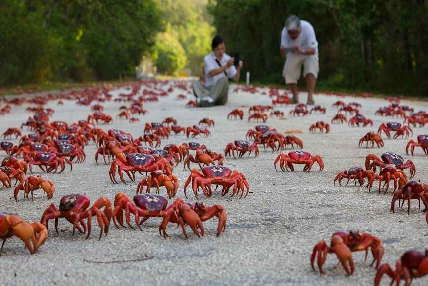 ഈ അപൂർവ പ്രതിഭാസം കാണാൻ ദൂരെ നിന്ന് സഞ്ചാരികൾ ഇവിടേക്ക് എത്താറുണ്ട്. എങ്കിലും, ഞണ്ടുകളെ കൊണ്ട് പൊറുതിമുട്ടുന്നത് ക്രിസ്മസ് ദ്വീപിൽ താമസക്കാരായ ജനങ്ങളാണ്. അഞ്ച് കോടി ഞണ്ടുകൾ കൂട്ടത്തോടെ റോഡുകളിലും വഴികളിലും ഇറങ്ങുന്നത് അപകടങ്ങൾക്ക് കാരണമാകാറുണ്ട്. അതിനാൽ ഞണ്ട് കുടിയേറ്റത്തിന് ആഴ്ചകൾക്ക് മുൻപ് തന്നെ അധികൃതർ മുന്നൊരുക്കങ്ങൾ തുടങ്ങും.