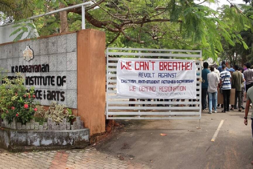 തിരുവനന്തപുരം: കെആർ നാരായണൻ ഇൻസ്റ്റിറ്റ്യൂട്ടിൽ അധ്യാപകരുടെയും ജീവനക്കാരുടെയും കൂട്ടരാജി. ഡീൻ ചന്ദ്രമോഹൻ, സിനിമോട്ടോഗ്രാഫി അധ്യാപിക ഫൗസിയ, ഓഡിയോ വിഭാഗത്തിലെ വിനോദ്, സിനിമാട്ടോഗ്രഫി വിഭാഗത്തിലെ നന്ദകുമാർ, അസിസ്റ്റന്റ് പ്രൊഫസർ ഡയറക്ഷൻ ബാബാനി പ്രമോദി, പ്രൊഡക്ഷൻ എക്സിക്യൂട്ടീവ് വിഭാഗത്തിലെ സന്തോഷ്, അഡ്മിനിസ്ട്രേഷൻ ഓഫീസർ അനിൽ കുമാർ എന്നിവരാണ് രാജിവെച്ചത്.
