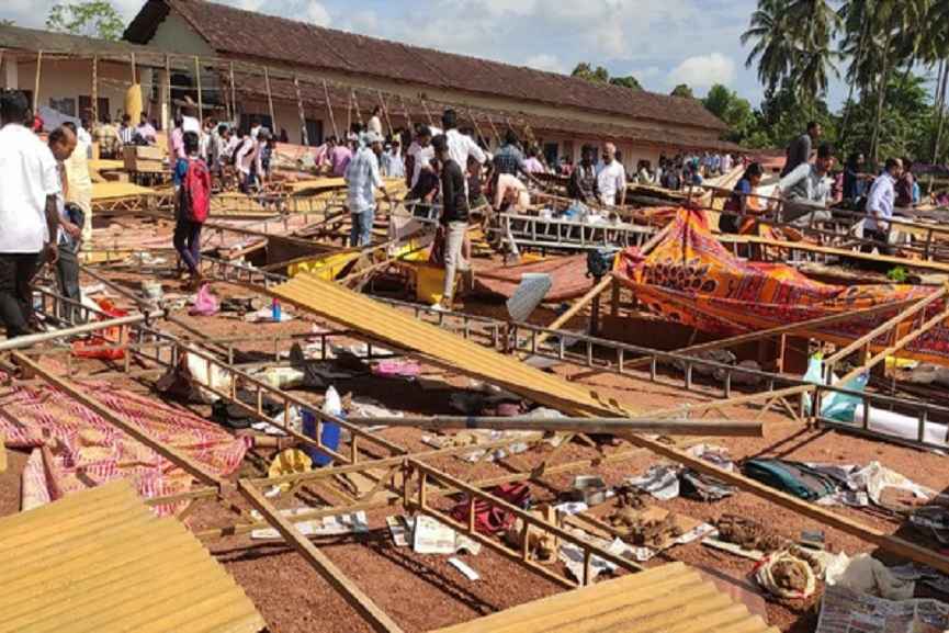 മൽസരങ്ങൾ നടന്ന പ്രധാന വേദിയിൽ, തകര ഷീറ്റും ഇരുമ്പ് കമ്പിയും ഉപയോഗിച്ച് നിർമിച്ച പന്തലാണ് തകർന്ന് വീണത്. ഉച്ചഭക്ഷണത്തിന്റെ ഇടവേളയായതിനാൽ കൂടുതൽ കുട്ടികൾ പന്തലിൽ നിന്ന് മാറിയിരുന്നു. അതുകൊണ്ട് വലിയ ദുരന്തം ഒഴിവായി. പന്തൽ നിർമാണത്തിലെ അപാകതയാണ് അപകടത്തിലേക്ക് നയിച്ചതെന്നാണ് പ്രാഥമിക നിഗമനം. സംഭവത്തിൽ മഞ്ചേശ്വരം പൊലീസ് അന്വേഷണം ആരംഭിച്ചിട്ടുണ്ട്. പന്തൽ നിർമാതാക്കളായ ഗോകുൽ ദാസ്, ബഷീർ, അലി എന്നിവർ പോലീസ് കസ്റ്റഡിയിലാണ്.