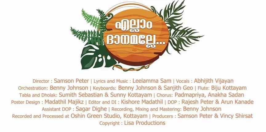 വീട്ടമ്മയായ ലീലാമ്മ സാം ഗാനരചനയും സംഗീതവും നല്‍കി മകന്‍ സാംസണ്‍ പീറ്റര്‍ സംവിധാനം ചെയ്‌ത ഗാനം സോഷ്യല്‍ മീഡിയയില്‍ ശ്രദ്ധേയമാകുന്നു. യുവഗായകന്‍ അഭിജിത്ത് വിജയൻ ആലപിച്ച ‘എല്ലാം ദാനമല്ലേ‘ എന്ന ഗാനമാണ് പ്രേക്ഷകർ ഇരുകൈയ്യും നീട്ടി സ്വീകരിച്ചത്.