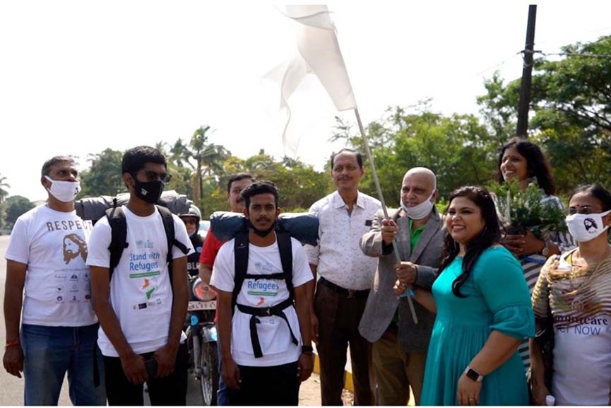 കൊച്ചി: അഭയാര്‍ഥികള്‍ക്ക് ഐക്യദാര്‍ഢ്യം പ്രഖ്യാപിച്ചും ഐക്യരാഷ്‌ട്രസഭയുടെ സുസ്‌ഥിര വികസന ലക്ഷ്യത്തിന്റെ പ്രചരണാര്‍ഥവും കന്യാകുമാരി മുതല്‍ ലഡാക്ക് വരെ രണ്ട് മലയാളി യുവാക്കള്‍ നടത്തുന്ന കാല്‍നടയാത്ര എറണാകുളം മറൈന്‍ ഡ്രൈവിലെ ക്യൂന്‍സ് വാക്ക് വേയില്‍ ഫ്‌ളാഗ്ഓഫ് ചെയ്‌തു.