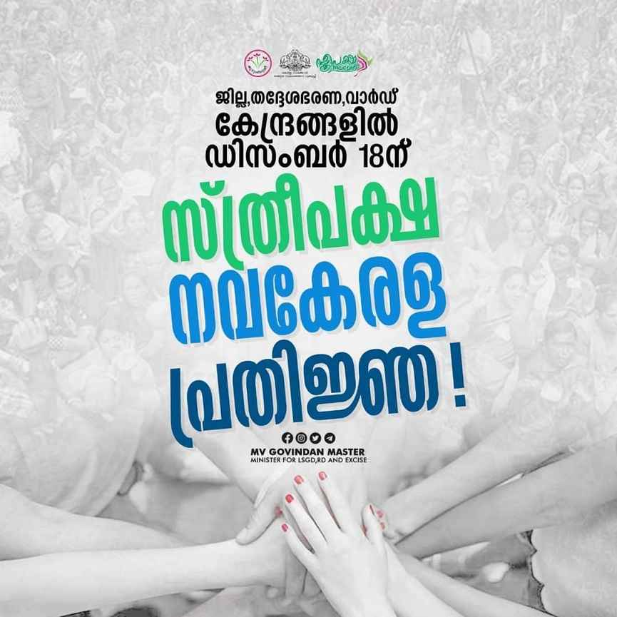 സ്ത്രീപക്ഷ നവകേരളത്തിന്റെ ഭാഗമായി ഉൽഘാടന ദിവസമായ ഡിസംബര് 18ന് സംസ്ഥാനത്തെ എല്ലാ ജില്ലാ കേന്ദ്രങ്ങളിലും തദ്ദേശ സ്വയംഭരണ സ്ഥാപന കേന്ദ്രങ്ങളിലും 20,000ത്തിലേറെ വാര്ഡുകളിലും കുടുംബശ്രീ പ്രവര്ത്തകരും ബഹുജനങ്ങളും സ്ത്രീപക്ഷ നവകേരള പ്രതിജ്ഞ എടുക്കുമെന്നും മന്ത്രി അറിയിച്ചു.
