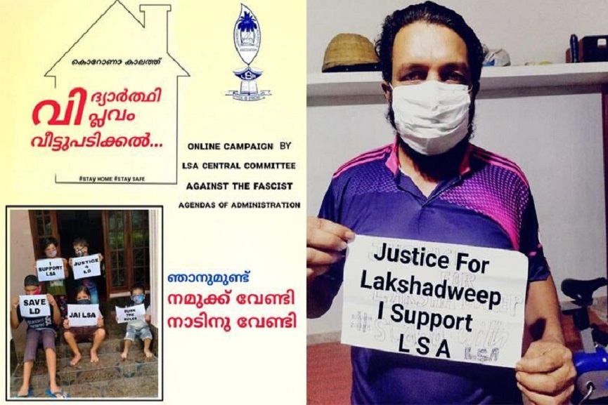 കവരത്തി: ലക്ഷദ്വീപ് അഡ്മിനിസ്ട്രേഷന്റെ കിരാത ഭരണത്തിനും ഏകാധിപത്യ നയങ്ങൾക്കുമെതിരെ വേറിട്ട പ്രതിഷേധവുമായി ലക്ഷദ്വീപ് സ്റ്റുഡന്റസ് അസോസിയേഷൻ രംഗത്ത്. ‘കൊറോണ കാലത്ത് വിദ്യാർഥി വിപ്ളവം വീട്ടുപടിക്കൽ‘ എന്ന പേരിൽ നടത്തിയ ഓൺലൈൻ പ്രതിഷേധത്തിൽ ആയിരക്കണക്കിന് പേർ പങ്കെടുത്തു.