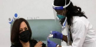 ലൈവായി കോവിഡ് വാക്സിനെടുത്ത് കമല ഹാരിസും