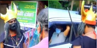 പടന്ന: കോവിഡ് മാനദണ്ഡങ്ങൾ പാലിക്കാതെ അനാവശ്യമായി പുറത്തിറങ്ങുന്നവർക്ക് മുന്നറിയിപ്പുമായി പടന്ന ഗ്രാമ പഞ്ചായത്തിൽ കാലനിറങ്ങി. പടന്നയിലെ മാഷ് പദ്ധതി പ്രവർത്തകരാണ് കോവിഡ് രണ്ടാം തരംഗത്തിൽ പാലിക്കേണ്ട നിർദ്ദേശങ്ങളെ കുറിച്ച് ജനങ്ങളെ ബോധവൽകരിക്കാൻ നഗരത്തിലിറങ്ങിയത്.