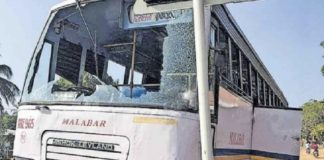 ഓടിക്കൊണ്ടിരുന്ന ബസിന്റെ ചില്ല് തകർന്നു; മൂന്ന് പേർക്ക് പരിക്ക്