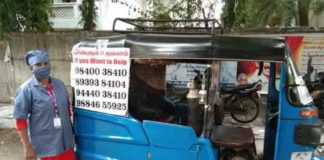 ചെന്നൈ: ചെന്നൈയിലെ രാജീവ് ഗാന്ധി ജനറൽ ആശുപത്രിക്ക് മുന്നിൽ ഓക്സിജൻ ഓട്ടോയുമായി യുവതി. 36കാരിയായ സീതാ ദേവിയാണ് കോവിഡ് രോഗികൾക്ക് പ്രാണവായു നൽകാൻ സന്നദ്ധയായി ആശുപത്രിക്ക് പുറത്ത് ഓട്ടോയുമായി നിൽക്കുന്നത്.