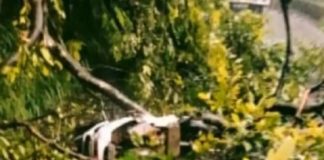 ഓടിക്കൊണ്ടിരുന്ന ബൈക്കിന് മുകളിൽ മരംപൊട്ടി വീണു; ദുരന്തം ഒഴിവായി