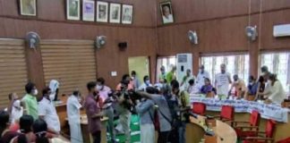 തൃശൂർ കോർപറേഷനിൽ കൗൺസിലർമാരുടെ തമ്മിലടി; മേയർ ഓടിരക്ഷപെട്ടു