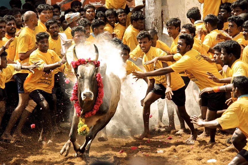 തമിഴ്നാട്ടില് മാട്ടുപ്പൊങ്കല് ഉൽസവത്തിന്റെ ഭാഗമായി മൂന്നാം ദിവസം നടത്തുന്ന മല്സരമാണ് ജല്ലിക്കട്ട്. നാല് ദിവസം നീണ്ടുനില്ക്കുന്ന പൊങ്കല് തമിഴ്നാട്ടിലെ വിളവെടുപ്പ് ഉല്സവമാണ്. കാളകളെ തളക്കുന്ന ഈ മല്സരയിനം മൃഗങ്ങളോട് കാണിക്കുന്ന ക്രൂരതയാണെന്നും, ഇത് നിരോധിക്കണമെന്നും ആവശ്യപ്പെട്ട് ധാരാളം മൃഗസ്നേഹികള് നിരവധി തവണ കോടതികളില് കയറിയിറങ്ങിയിട്ടുണ്ട്.
