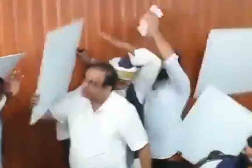 കേന്ദ്രമന്ത്രിയുടെ വാർത്താ സമ്മേളനത്തിനിടെ സീലിങ് തകർന്നുവീണു