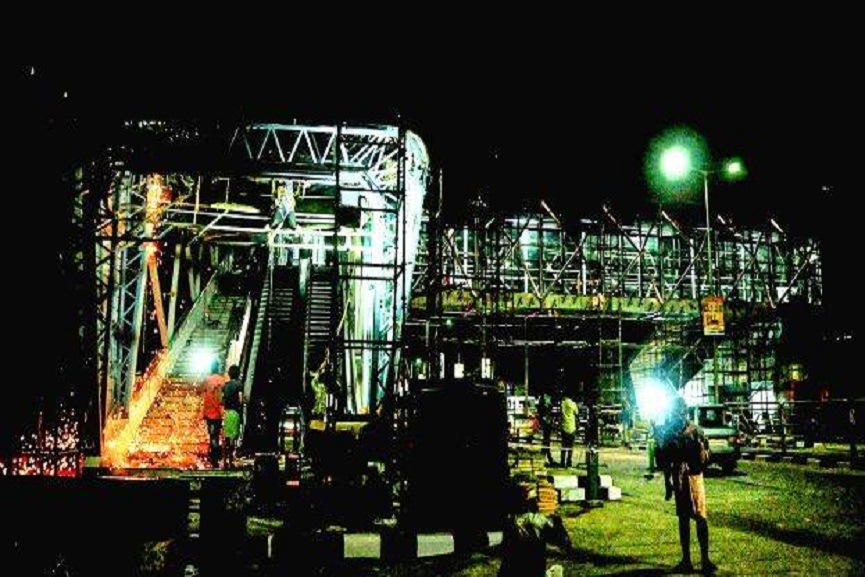 കൊച്ചി മെട്രോ റെയില് കോര്പ്പറേഷന്റെ മേല്നോട്ടത്തില് ഊരാളുങ്കല് ലേബര് കോണ്ട്രാക്റ്റ് സൊസൈറ്റിയാണ് നിര്മ്മാണം പൂര്ത്തിയാക്കിയത്. 2019 ഫെബ്രുവരിയില് നടപ്പാലത്തിന്റെ നിര്മ്മാണം ആരംഭിച്ചിരുന്നു എങ്കിലും ലോക്ക്ഡൗണ് പ്രഖ്യാപിച്ചതോടെ നിര്മ്മാണ പ്രവൃത്തികള് നിലക്കുകയായിരുന്നു. കൂടാതെ ചൈനയില് നിന്ന് എസ്കലേറ്റര് എത്താന് ആറുമാസത്തോളം വൈകുകയും ചെയ്തിരുന്നു. നേരത്തെ 2020 ജൂണ് മാസത്തോടെ ഉല്ഘാടനം നടത്താനായിരുന്നു തീരുമാനിച്ചിരുന്നത്.