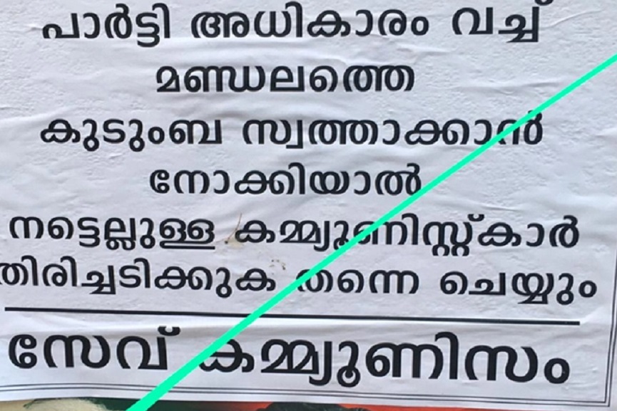 പാലക്കാട്: മന്ത്രി എകെ ബാലനെതിരെ പാലക്കാട് നഗരത്തില് പോസ്റ്ററുകള്. സേവ് കമ്മ്യൂണിസത്തിന്റെ പേരിലാണ് പോസ്റ്ററുകൾ പ്രത്യക്ഷപ്പെട്ടത്. മണ്ഡലം കുടുംബ സ്വത്താക്കാന് നോക്കിയാല് നട്ടെല്ലുള്ള കമ്മ്യൂണിസ്റ്റുകാർ തിരിച്ചടിക്കുമെന്നും അധികാരമില്ലാതെ ജീവിക്കാനാകാത്തവര് തുടര്ഭരണം ഇല്ലാതാക്കുമെന്നും പോസ്റ്ററില് പറയുന്നു.