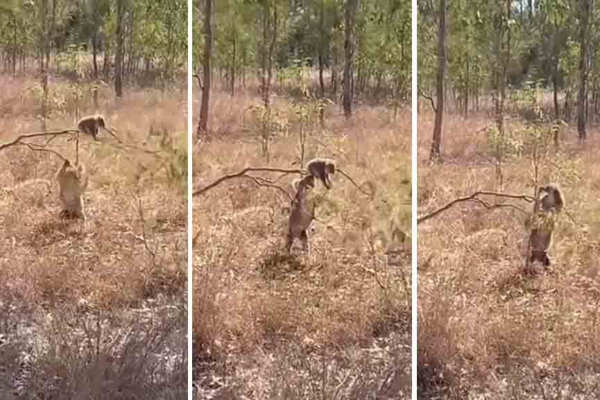 ഒടുവിൽ അമ്മ കൊവാല മരക്കൊമ്പ് വളച്ച് പിടിച്ചപ്പോൾ കുഞ്ഞ് താഴെ വീണു, എന്നാൽ അപ്പോഴും അമ്മക്ക് പിടികൊടുക്കാൻ കുഞ്ഞ് തയ്യാറായില്ല. വീണ്ടും ഓടി മരക്കൊമ്പിൽ കയറി ഇരുന്നു. അമ്മയുടെ കരുതലും കുഞ്ഞിന്റെ കുസൃതിയും നിറഞ്ഞു നിൽക്കുന്ന ഈ വീഡിയോ സോഷ്യൽ മീഡിയ ഏറ്റെടുത്തുകഴിഞ്ഞു.