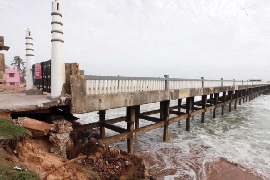 തിരുവനന്തപുരം: വലിയതുറ പാലത്തിൽ വിള്ളൽ രൂപപ്പെട്ടതിനെ തുടർന്ന് കടൽപാലം ചരിഞ്ഞു. ഇന്നലെ രാത്രിയുണ്ടായ ശക്തമായ കാറ്റിലും കടലാക്രമണത്തിലുമാണ് പാലത്തിന് വിള്ളൽ രൂപപ്പെട്ടത്. ഇതോടെ പാലത്തിന്റെ ഒരു ഭാഗം ചരിഞ്ഞ നിലയിലാണ്. പലതവണ പാലത്തിന് കേടുപാടുകൾ സംഭവിച്ചിരുന്നെങ്കിലും നവീകരിച്ച് വരികയായിരുന്നു. വിള്ളൽ രൂപപ്പെട്ടതോടെ അപകട സാധ്യത കണക്കിലെടുത്ത് പാലത്തിന്റെ ഗേറ്റ് പൂട്ടി.