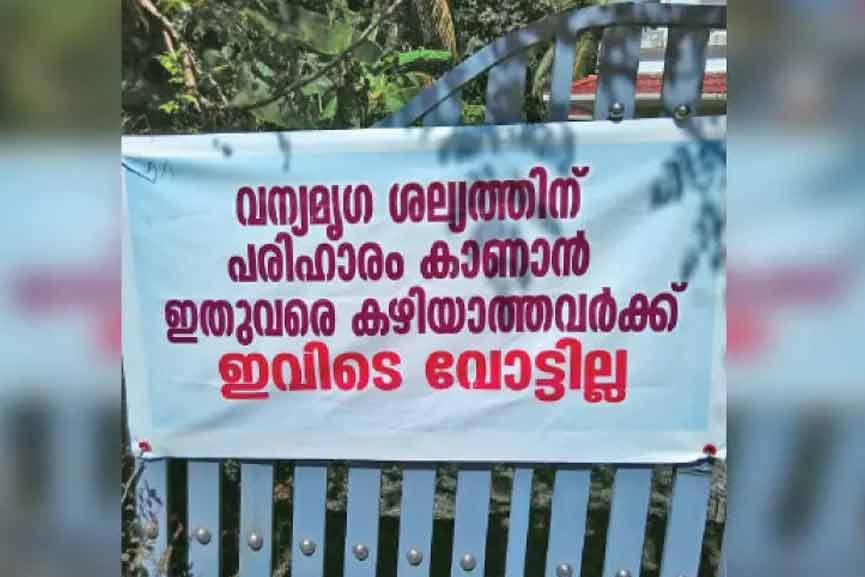 കണ്ണൂർ: വന്യമൃഗ ശല്യത്തിന് പരിഹാരം കാണാൻ ശ്രമിക്കാത്ത ഒരു രാഷ്ട്രീയ പാർട്ടിയും വോട്ട് ചോദിച്ചു വരേണ്ടെന്ന് കണ്ണൂർ അമ്പായത്തോട്ടിലെ ജനങ്ങൾ. ‘വന്യമൃഗ ശല്യത്തിന് പരിഹാരം കാണാൻ ഇതുവരെ കഴിയാത്തവർക്ക് ഇവിടെ വോട്ടില്ല‘ എന്ന ബാനറും ഇവിടുത്തെ കർഷകർ സ്ഥാപിച്ചിട്ടുണ്ട്. പ്രതികരണവേദി പ്രവർത്തകരാണ് വീടിന് മുന്നിൽ ബാനർ സ്ഥാപിച്ചത്.
