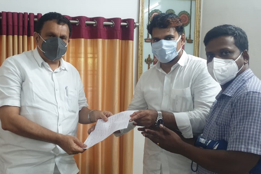 മുഹമ്മദ് ഏറാമലയും പ്രവീൺ ഇരിങ്ങലും കെ മുരളീധരൻ എംപിക്ക് നിവേദനം കൈമാറുന്നു