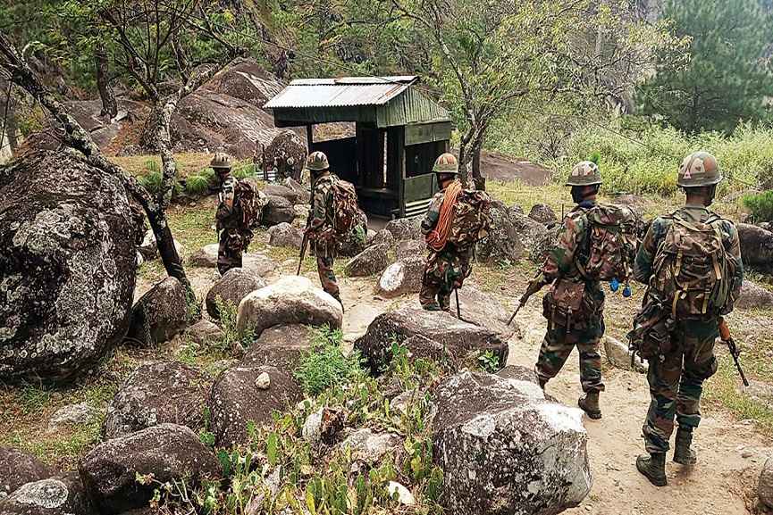 സ്ഫോടനം നടന്ന സ്ഥലത്ത് ഭീകരർക്കായുള്ള തിരച്ചിൽ പുരോഗമിക്കുന്നുണ്ടെങ്കിലും ഇതുവരെയും ആരെയും കണ്ടെത്താൻ സാധിച്ചിട്ടില്ലെന്നാണ് റിപ്പോർട്. മൂന്നുപേരടങ്ങുന്ന സംഘമാണ് പട്രോളിങ്ങിനായി പോയത്. ഇതിൽ രണ്ടുപേർക്ക് സംഭവ സ്ഥലത്ത് വെച്ചുതന്നെ ജീവൻ നഷ്ടപ്പെട്ടതായാണ് വിവരം. സ്ഫോടനത്തിന് പിന്നാലെ കൂടുതൽ കരസേന ഉദ്യോഗസ്ഥർ മേഖലയിൽ തിരച്ചിൽ ഊർജിതമാക്കിയിട്ടുണ്ട്.