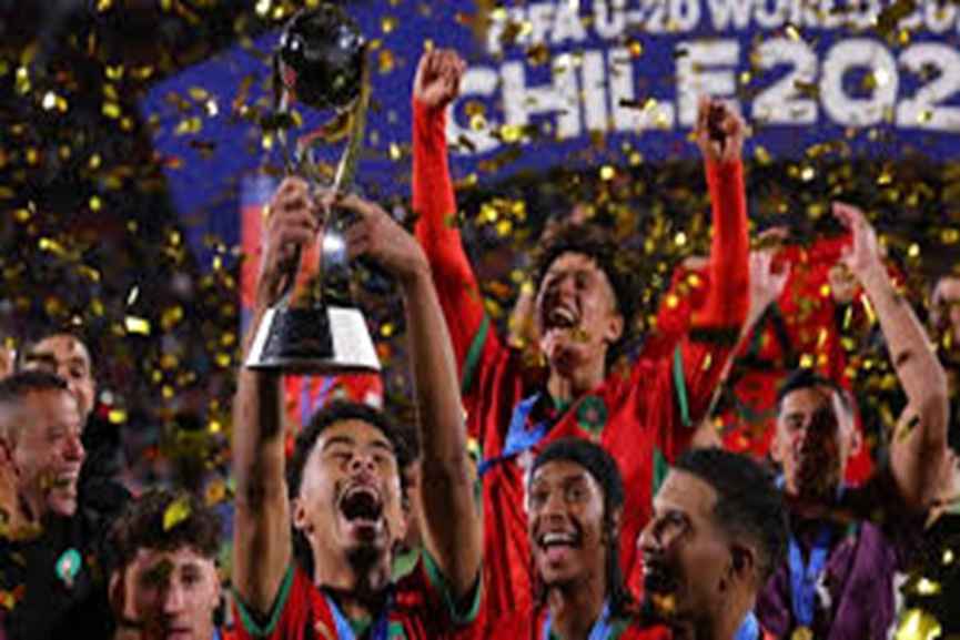 സാന്റിയാഗോ: അണ്ടർ-20 ലോകകപ്പ് ഫുട്ബോൾ ഫൈനലിൽ ചരിത്രം കുറിച്ച് മൊറോക്കോ. ചിലിയിലെ സാന്റിയാഗോയിൽ നടന്ന ഫൈനൽ മൽസരത്തിൽ അർജന്റീനയെ എതിരില്ലാത്ത രണ്ട് ഗോളുകൾക്ക് പരാജയപ്പെടുത്തിയാണ് മൊറോക്കോ ചാംപ്യൻമാരായത്. ചരിത്രത്തിൽ ആദ്യമായാണ് മൊറോക്കോ അണ്ടർ-20 ലോകകകപ്പ് നേടുന്നത്.