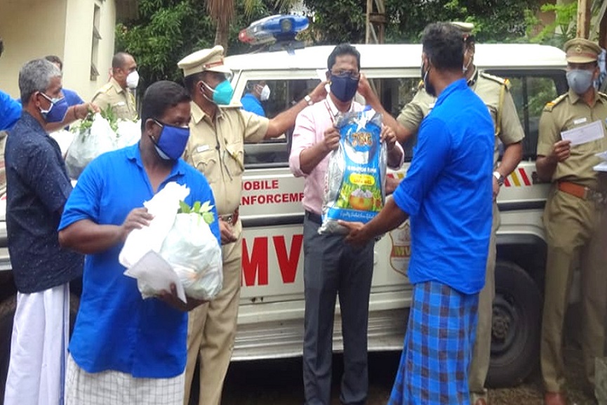 സന്നദ്ധ സേവനം നൽകുന്ന തൊഴിലാളികൾക്ക് സഹപ്രവർത്തകരുടെയും മറ്റുള്ളവരുടെയും സഹകരണത്തോടെ പലചരക്കും പച്ചക്കറിയും മാസ്ക്കുകളും അടങ്ങുന്ന കിറ്റാണ് മോട്ടോർ വാഹന വകുപ്പ് നൽകിയത്.