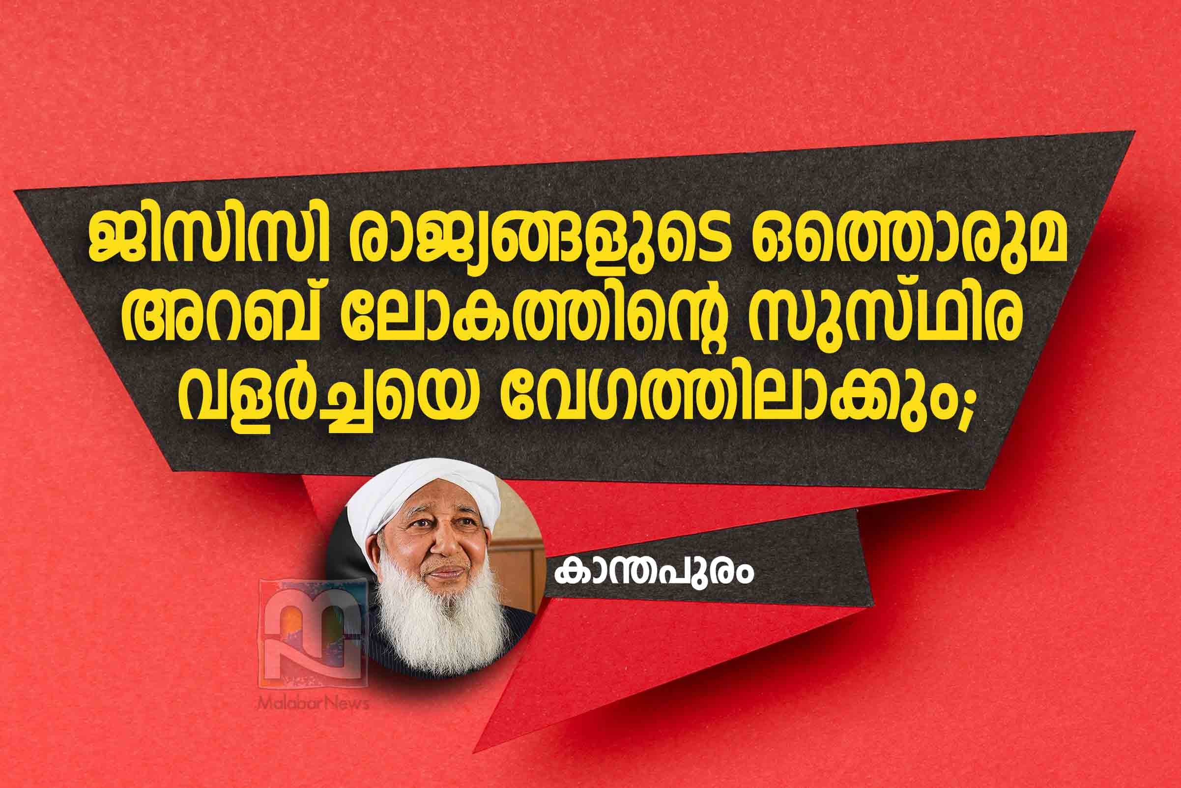 ജിസിസി രാഷ്ട്രങ്ങൾ ഒരുമിച്ചു നിന്ന് സാമൂഹിക-സാമ്പത്തിക പദ്ധതികള് ആവിഷ്കരിച്ചു നടപ്പിലാക്കുന്നത് അറബ് ലോകത്തിന്റ സുസ്ഥിര വളര്ച്ചയെ വേഗത്തിലാക്കും. അറബ് ഇസ്ലാമിക പൈതൃകം ആഴത്തില് നിലനില്ക്കുന്ന ഈ രാജ്യങ്ങളുടെ യോജിച്ചുള്ള പ്രവര്ത്തനങ്ങളും, പദ്ധതികളും ഏഷ്യ ആഫ്രിക്ക വൻകരകളിലെ നിരവധി രാജ്യങ്ങള്ക്കും സഹായകരമാകും; കാന്തപുരം വ്യക്തമാക്കി.