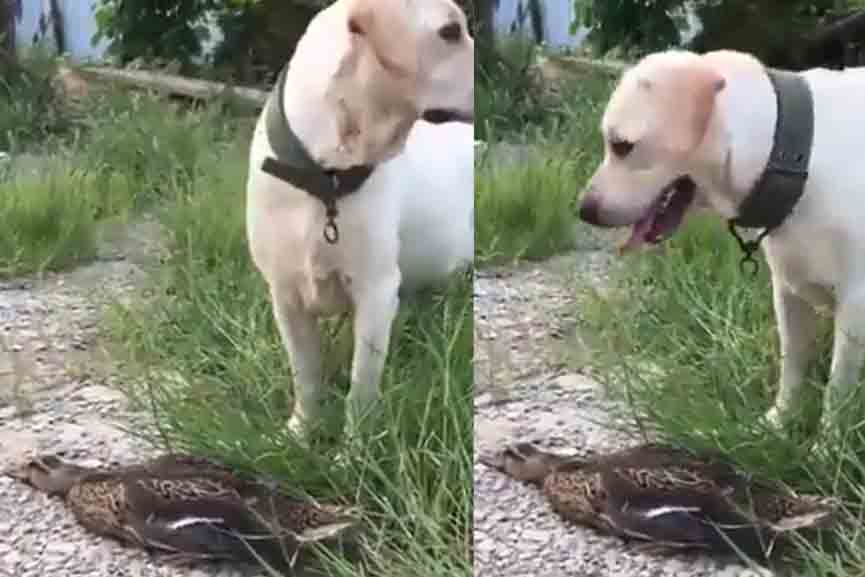 അനങ്ങാതെ ചത്തതുപോലെ ഒറ്റ കിടപ്പങ്ങ് കിടന്നു. നായക്കുട്ടി കുറച്ചു സമയം താറാവിന്റെ അടുത്ത് നിന്നെങ്കിലും പിന്നെ സ്ഥലത്ത് നിന്നും പോയി. നായക്കുട്ടി പോയതോടെ താറാവ് ജീവനും കൊണ്ട് അവിടെനിന്നും ഓടുന്നതും വീഡിയോയിൽ കാണാം.