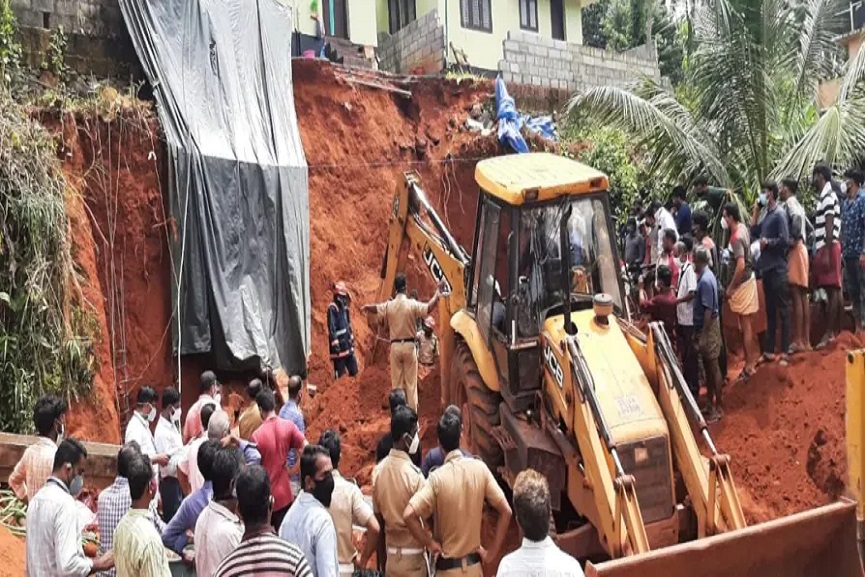 ഫയർഫോഴ്സും, നാട്ടുകാരും ചേർന്ന് ഏറെ നേരത്തെ പരിശ്രമത്തിനൊടുവിലാണ് 3 പേരെ രക്ഷപെടുത്തിയത്. നിലവിൽ ആശുപത്രിയിൽ പ്രവേശിപ്പിച്ച ഇവരുടെ സ്ഥിതി ഗുരുതരമല്ലെന്നാണ് വ്യക്തമാകുന്നത്. മഴയെ തുടർന്ന് സുരക്ഷയ്ക്കായി മൂന്ന് വീടുകളോട് ചേർന്നാണ് മതിൽ നിർമാണം നടത്തികൊണ്ടിരുന്നത്. കഴിഞ്ഞ ദിവസമാണ് പണി ആരംഭിച്ചത്. മണ്ണിടിച്ചില് ഭയന്ന് അടിഭാഗം കമ്പിയിട്ട് ഉയര്ത്തി കെട്ടാനായിരുന്നു പദ്ധതിയിട്ടിരുന്നത്. ഈ പണികൾ പുരോഗമിക്കുന്നതിനിടെയാണ് താഴെ നിന്ന് ജോലി ചെയ്തവരുടെ മുകളിലേക്ക് മണ്ണിടിഞ്ഞു വീണത്.