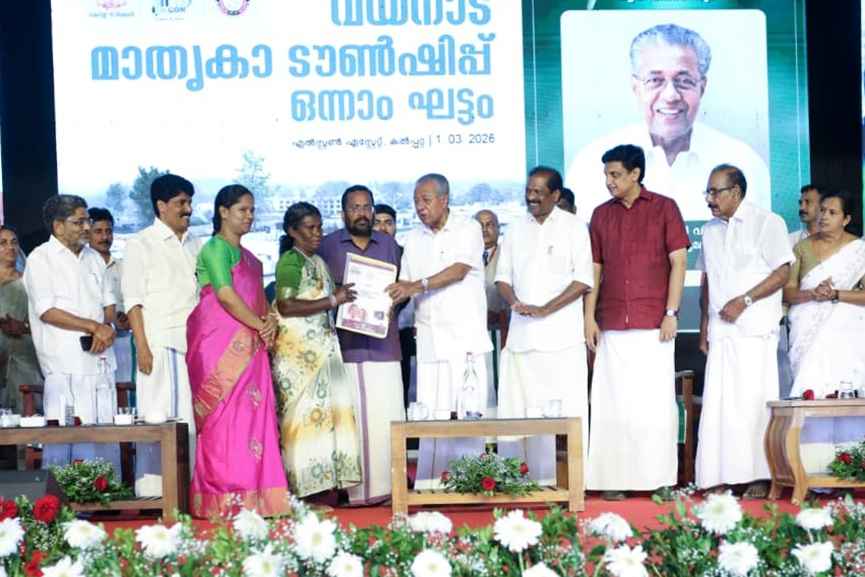 വീട് നിൽക്കുന്ന ഏഴുസെന്റ് ഭൂമിക്കുള്ള പട്ടയവും ദുരന്തത്തിൽ ഒറ്റപ്പെട്ടുപോയ 13 പട്ടികവർഗ കുടുംബങ്ങളെ പുനരധിവസിപ്പിക്കുന്നതിന് മേപ്പാടി പുതിയ വില്ലേജിൽ ഏറ്റെടുത്ത 5 ഏക്കർ ഭൂമിക്കുള്ള പട്ടയവും മുഖ്യമന്ത്രി വിതരണം ചെയ്‌തു. ദുരന്തബാധിതരായ ആളുകളെ കൂടുതൽ മെച്ചപ്പെട്ട ഒരു ആവാസ വ്യവസ്‌ഥയിലേക്ക് എത്തിക്കുകയാണ് ടൗൺഷിപ്പ് പദ്ധതിയിലൂടെ സർക്കാർ ലക്ഷ്യമിട്ടത്.
