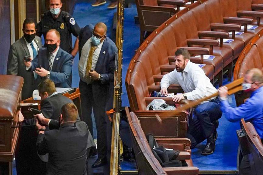 പാർലമെന്റ് മന്ദിരമായ ക്യാപിറ്റോളിലേക്ക് ആയുധങ്ങളുമായി ഇരച്ചുകയറിയ പ്രതിഷേധക്കാരെ തടയുന്നതിൽ നാഷണൽ ഗാർഡ്സ് ദയനീയമായി പരാജയപ്പെടുകയായിരുന്നു. അമേരിക്കൻ പ്രസിഡണ്ട് തിരഞ്ഞെടുപ്പിലെ ജോ ബൈഡന്റെ വിജയം ഔദ്യോഗികമായി അംഗീകരിക്കുന്നതിനായി ചേർന്ന ഇരു സഭകളും അപ്രതീക്ഷിത ആക്രമണത്തിന് മുന്നിൽ പകച്ച് പകുതിവഴിയിൽ നിർത്തിവെച്ചു. സെനറ്റർമാരെ പാർലമെന്റിൽ നിന്നും നീക്കിയശേഷം നാലുമണിക്കൂറിലേറെ നേരം പണിപ്പെട്ടാണ് പ്രതിഷേധക്കാരെ ക്യാപിറ്റോളിൽ നിന്നും ഒഴിപ്പിക്കാനായത്. കലാപത്തെ തുടർന്ന് വാഷിങ്ടണിൽ കര്ഫ്യൂ പ്രഖ്യാപിച്ചു.