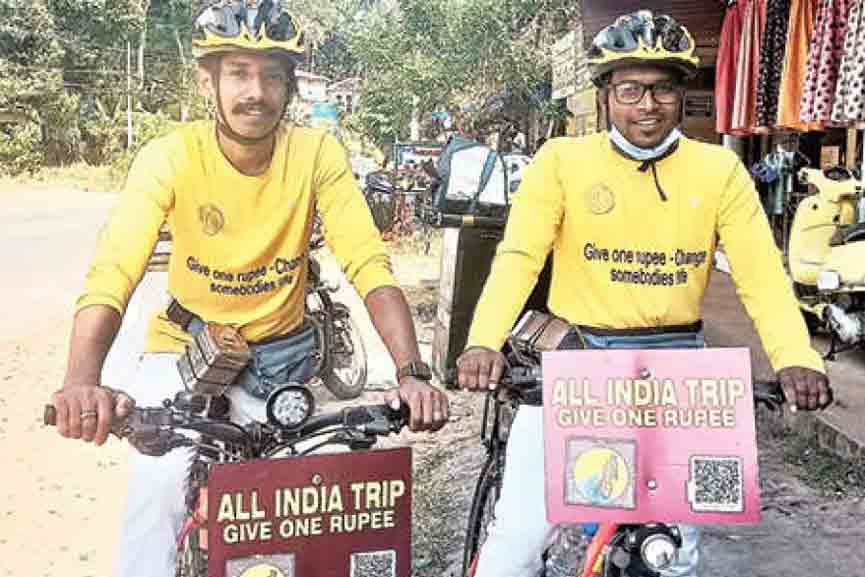 കൊട്ടിയൂരിൽ നിന്ന് തുടങ്ങിയ യാത്ര കണ്ണൂർ, കാസർഗോഡ് ജില്ലകളിലെ ഉൾപ്രദേശങ്ങളിൽകൂടി സഞ്ചരിച്ചാണ് രാജപുരത്ത് എത്തിയത്. അടുത്തദിവസം കാസർഗോഡ് എത്തുന്നതോടെ ദേശീയപാതയിലൂടെ ആയിരിക്കും യാത്ര. 11 മാസം കൊണ്ട് സംസ്‌ഥാനമൊട്ടാകെ സഞ്ചരിച്ച് സഹായം തേടും. തുടർന്ന് മറ്റ് സംസ്‌ഥാനങ്ങളിലേക്ക് പോകും. രണ്ടുവർഷം കൊണ്ട് ഭാരതയാത്ര പൂർത്തിയാക്കും. 42 ലക്ഷം രൂപയാണ് യാത്രയിലൂടെ ഇവർ ലക്ഷ്യമിടുന്നത്.