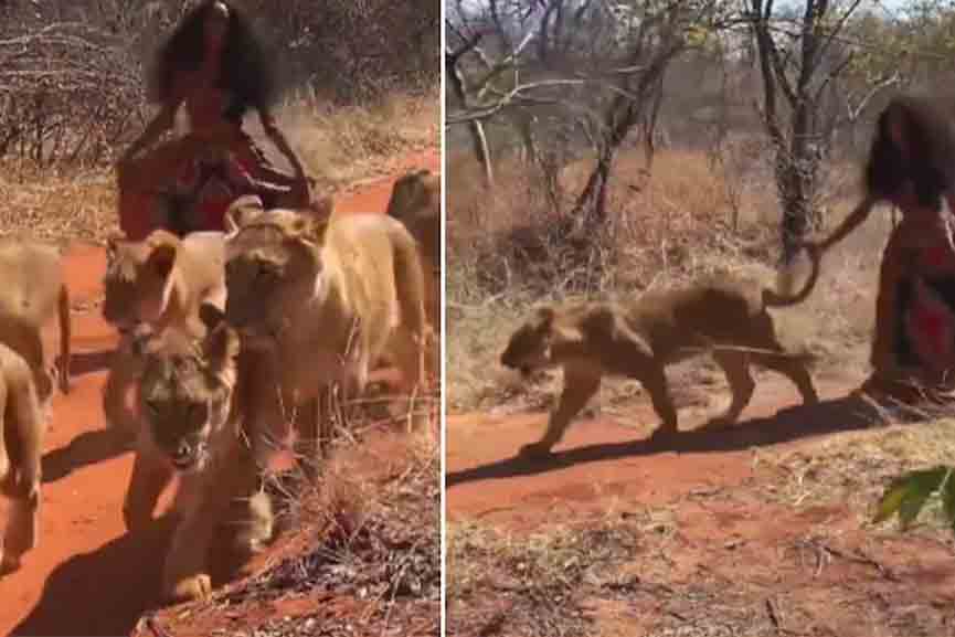 സഫാരി ഗാലറി ഇൻസ്റ്റഗ്രാമിൽ പങ്കിട്ട, ആഫ്രിക്കയിൽ നിന്നുള്ള ഒരു വീഡിയോ ആണ് ഇപ്പോൾ സോഷ്യൽ മീഡിയയിലെ ചർച്ചാ വിഷയം. ഒരു യുവതി സിംഹ കൂട്ടങ്ങൾക്ക് ഒപ്പം കാട്ടിലൂടെ ആസ്വദിച്ച് നടക്കുന്നതാണ് വീഡിയോ. മുന്നിൽ സിംഹങ്ങളും പിറകിലായി യുവതിയും നടന്നു നീങ്ങുന്നത് വീഡിയോയിൽ കാണാം. നടക്കുന്നതിനിടെ ഒരു സിംഹത്തിന്റെ വാലിലും യുവതി പിടിക്കുന്നുണ്ട്.