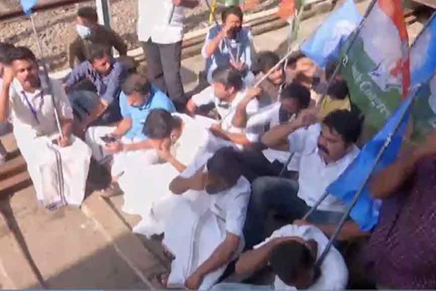 കർഷകർക്ക് പിന്തുണയുമായി യൂത്ത് കോൺഗ്രസ്; പാലക്കാട് ട്രെയിൻ തടഞ്ഞു